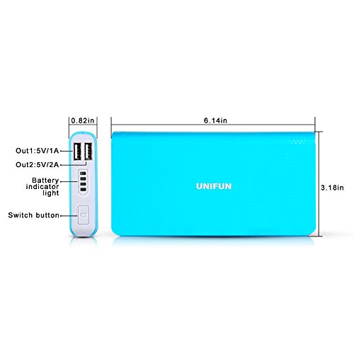 -. Binding : Wireless Phone Accessory -. Brand : UNIFUN -. EAN : 6955574646472 -. Feature : Constructed with A+ lithium-ion battery cells and build-in intelligent charging microchips to ensure safety use and long lifespan / Super-fast charge dual USB output (5V / 2A,5V / 1A ) allow simultaneous charging of your iPad, iPhone, Android, and more at high speed. / 5V 2A (max) input, needs only 10 hours(Save your 50% time on recharging) to full charge the huge capacity 20000mAh external battery with a power adapter of 5V 2.1A or higher output (not included). / 4 blue LED indicators to display the remaining power;Intelligent circuit design protects against short circuiting, over-heating, over-currents, and over-charging. / Package content: Unifun 2Amp input 20000mAh power bank, premium charging cable and user manual. -. Label : UNIFUN -. Manufacturer : UNIFUN -. PackageQuantity : 1 -. ProductGroup : Wireless -. ProductTypeName : WIRELESS_ACCESSORY -. Publisher : UNIFUN -. Studio : UNIFUN -. Title : Unifun 20000mAh Power Bank Backup External Battery Dual USB 2A Fast Charging Portable Charger for iPhone 6S 6 Plus, iPad and Samsung Galaxy S6 Edge