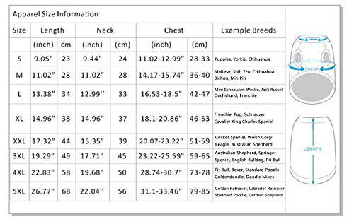 -. Feature : Size: S, back length 9.05", top neck 9.44", chest 11.02"-12.99", recommend breed: Puppies, Yorkie, Chihuahua / Quality polyester nylon fabric, waterproof, windproof, snow-proof, cold weather and rain day / Thick fleece lined, warm and soft / The hold in the neck allows leash and collar easy to pass through / Fully adjustable Velcro closures at neck and chest as much as possible to meet the different body of the dog
