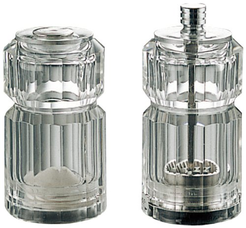 - Clear acrylic pepper mill and salt shaker set