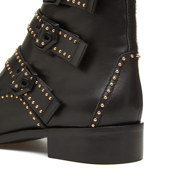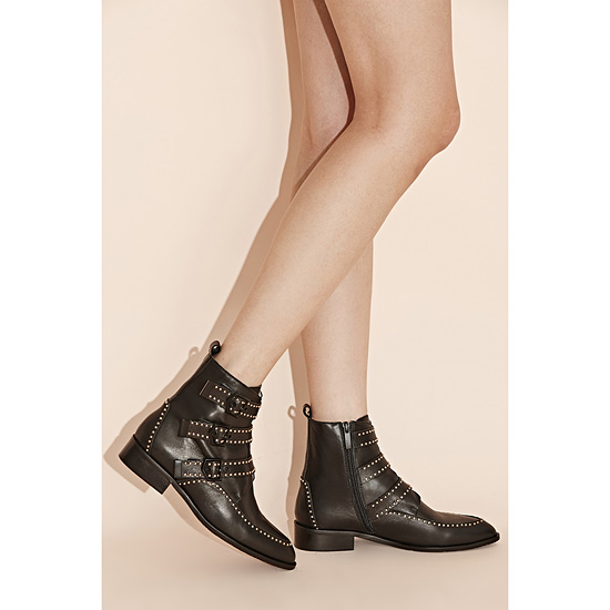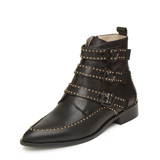 - 세미 포인트 토를 사용해 시크한 무드의 앵클 부츠.