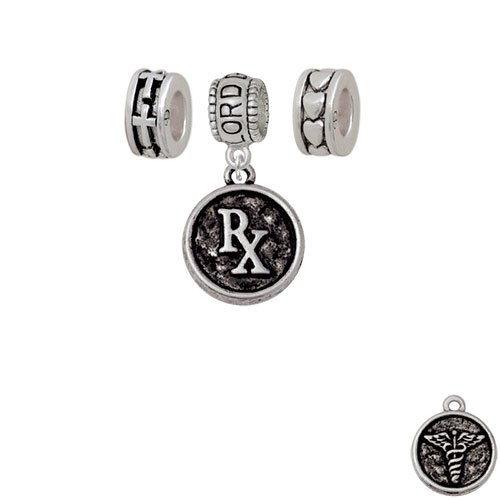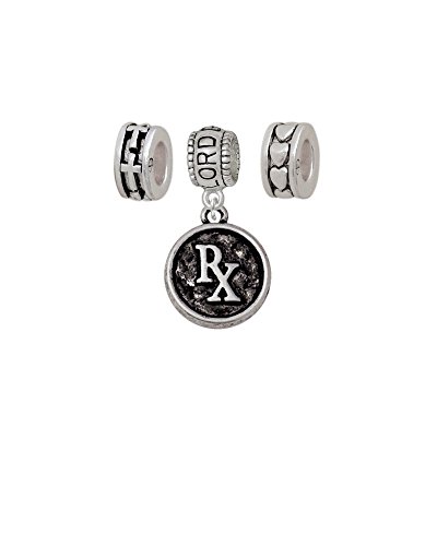 -. Feature : Silver Tone Antiqued Medical Caduceus Seal - Rx Lord Guide Me Charm Bead Hanger with Band of Crosses and Band of Hearts Beads (Set of 3). / Silver Tone Medical Caduceus Seal - Rx is approx. 0.78 x 0.66 x 0.15 (HxWxD) including loop. Antiqued Seal Design with Rx on the front and a Caduceus on the back. / Lord Guide Me Charm Bead is 0.41 x 0.28 x 0.41 inches (HxWxD) - Hole Size 5.5 mm. Cross Band bead is approx. 12x11x6mm (HxWxD) - Hole Size 4.5mm. Hearts Band bead is approx. 12x11x6mm (HxWxD) - Hole Size 4.5mm. / Our Charm Beads are compatible with most Charm Bead Bracelets. Also makes a great necklace pendant. / These beads are wonderful for a starting a european large hole bead bracelet. Delight & Co. Crystal Rondelles are available in Red, Orange, Yellow, Teal, Green, Blue, Pink and many more! Also available in other styles too! Check out our Bridal Party, Graduations, Religious, Crystal Birthday Colors, and many more!