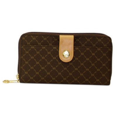 Studio : Rioni Publisher : Rioni Binding : Apparel Product Description st-w006 Features: -Gentle dark gold 'RR' Rioni monogram print on solid brown Italian canvas body.-Embossed with gold RIONI Moda Italia emblem.-Outside contains two side pockets, one with button closure.-Small enough to be a wallet, big enough to be a clutch.-Lined in suede.-Zip around closure opens to brown suede with six dividing compartments, center coin holder and twenty-four credit card holders.-Detachable identification card holder. Dimensions: -Dimensions: 8' H x 4.5' D. 0