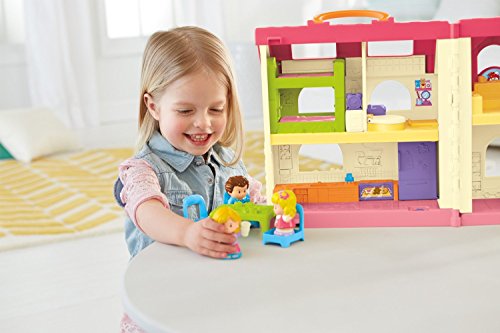 Welcome to the Little People Surprise & Sounds Home. It's one busy, happy home - and it's filled from floor to ceiling with great learning & fine motor activities for your toddler! The day starts when you press the alarm clock to flip Emma out of bed and hear fun sounds like "Rrring!" and "Time to get out of bed, sleepyhead!" Slide the bluebird to see the kitty pop up in the window on one side - and what the weather's like on the other. Lift the toilet lid to hear it flush (whoosh!) & activate other silly sounds & phrases. Open the oven & refrigerator doors - see the lights go on & hear fun phrases. Press the music player for 4 fun songs - feel free to dance along! When it's time for bed, put Mom, Dad and Emma in their beds, close up the house (everything stores inside) and say "goodnight" until next time. With the Little People Surprise & Sounds Home, you can bring all the fun, sounds and joy of a real home right to your house. Or grab the handle and take it with you on the go-go-go****'Vroom, vroom!' The adventures get rolling as toddlers push the Little People Songs and Sounds Camper along to fun sounds, phrases and a camping song. And when kids open the camper, it transforms into a cool campsite, complete with bunk beds, picnic table, chairs, glowing campfire, game table, a rock with pop-up critters - even a fishing dock, boat and fishing pole with a 'live' one at the end! Plus, there are more than 40 sounds, phrases and sing-along songs, and 5 activation points to make the role play fun more real!****Toddlers will love driving mom and baby all around town in the Little People SUV. That's because they're in the driver's seat, heading to all the places they want to go - whether it's the ice cream shop, toy store, or playground! And when little ones press down on the driver's seat, they'll hear realistic car sounds, fun phrases and even a song to get the pretend play rolling.Feature