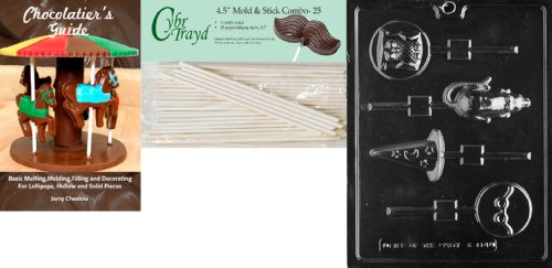 Cybrtrayd 'Harry The Wizard Assorted Lolly' Kids Chocolate Candy Mold with 25 4.5-Inch Lollipop Sticks and Chocolatier's Guide