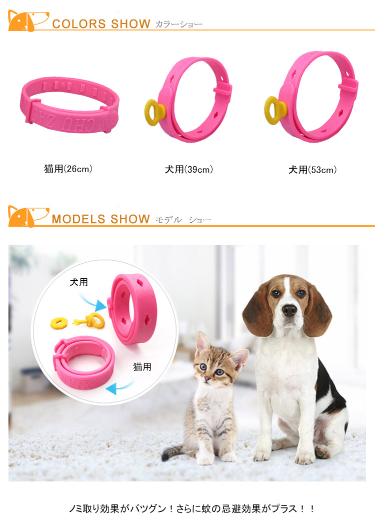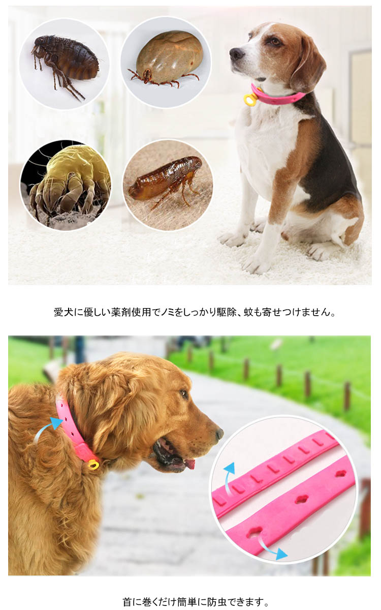 | ノミ取り効果がバツグン!さらに蚊の忌避効果がプラス!!愛犬に優しい薬剤使用でノミをしっかり駆除、蚊も寄せつけません。首に巻くだけ簡単に防虫できます。 | |