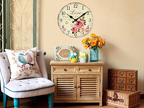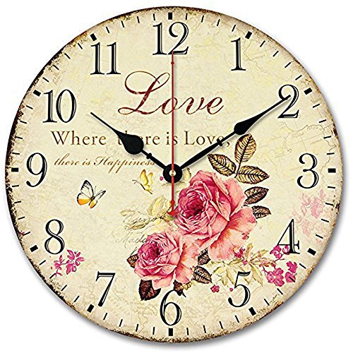 -. Feature : Decorate your home with this nice vibrantly P.R.Inted wall clock. Perfect for living room and bedroom / Material: Wooden MDF, covered by Paper,12"(30cm),14"(35.5cm),Thickness: 9mm / More acute and quiet with Taiwan Sangtai 12888 Scanning Quartz Movement. This movement is one of most wellknown movement. / Take 1 AA Carbon Zinc or Heavy Duty battery, not Alkaline battery (not included in the package). / Guarantee:Try it totally risk free! Included free 100% lifetime money back guarantee! If for any reason you decide it's not for you just return it, absolutely no questions asked! The guarantee has no expiration date.