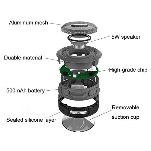 -. Title : IPX4 Waterproof Bluetooth Speaker Hands free Built-in Microphone, Deep Bass,Suction Cup,TF Card,Sound Powerful for Shower and Pool. Compatible with iPhone iPad Android.