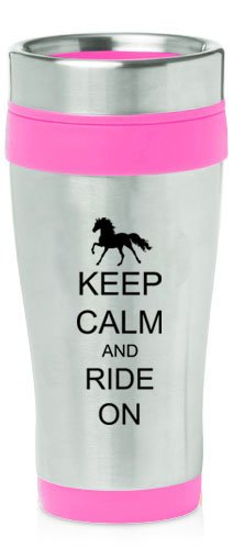 -. Title : Hot Pink 16oz Insulated Stainless Steel Travel Mug Z526 Keep Calm and Ride On Horse