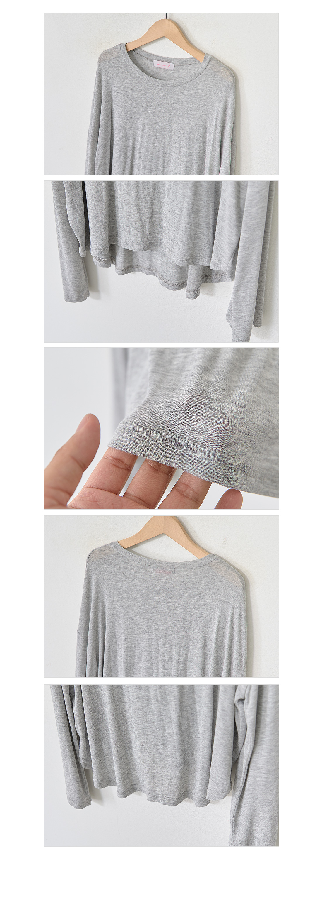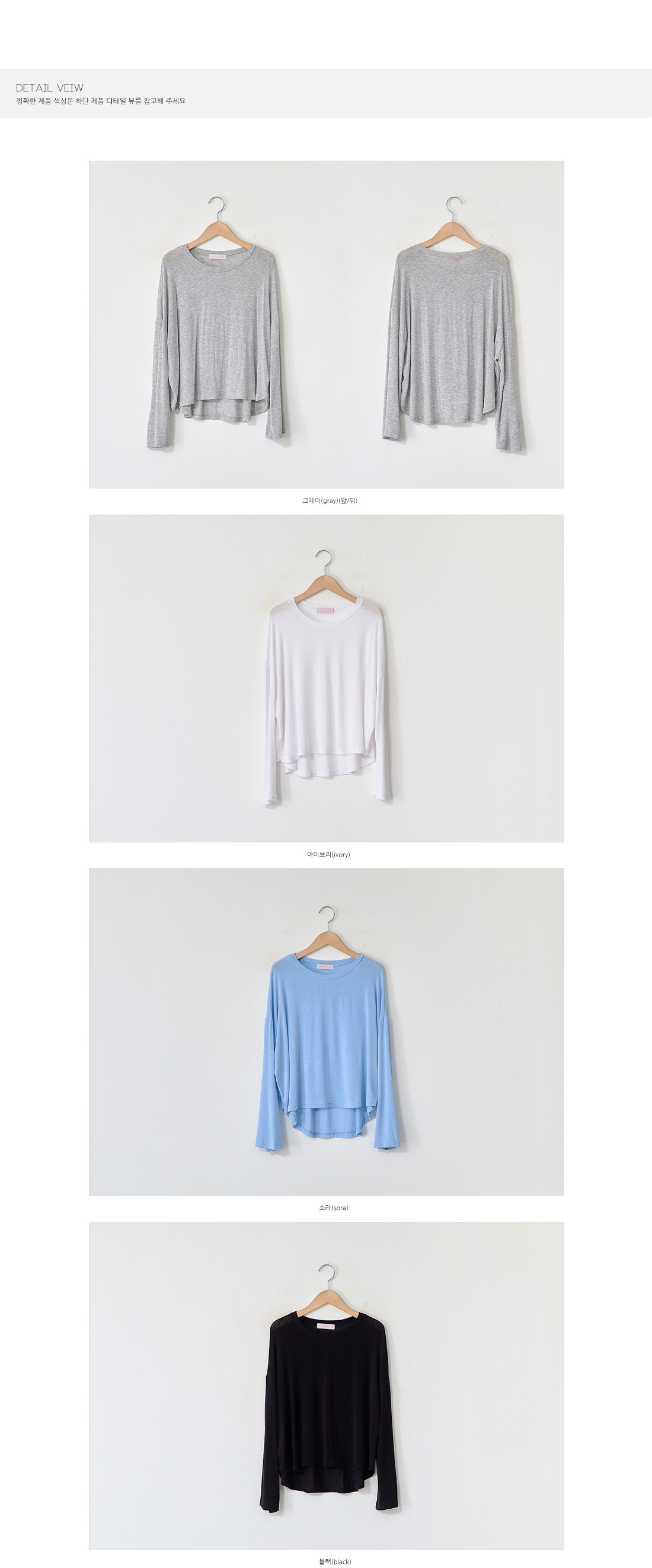 바디에 자연스럽게 드레이핑 되는 느낌과 함께 언발란스 기장 + 라운딩