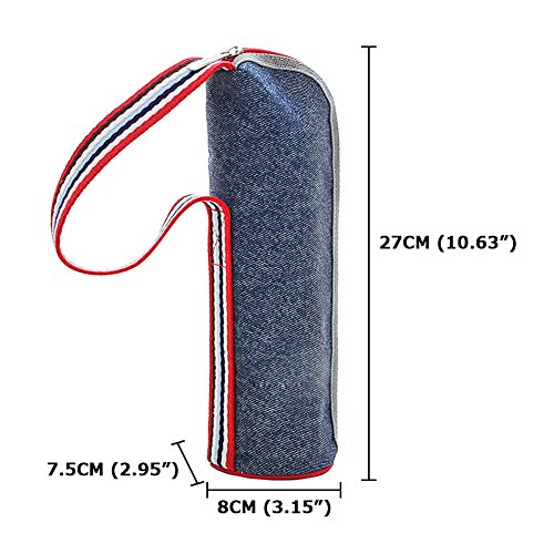 -. Feature : 【MANY WAYS TO CARRY】 Portable water bottle carrier has a strap which is sturdy to carry. You can carry it by wrist, or you can carry it on your arm, or, hang it on the baby car, or cycling handle, or hang it on your backpack when you are climbing, etc. / 【HARD TO DIRTY, EASY TO CLEAN】 The outside material of the hot water bottle holder is oxford cloth, dirt-proof, eco-friendly, durable, hard to abrasion, reusable. Resistant to dirty and easy to clean. To keep its "keep warm & cold" function, recommended hand wash, not recommended machine wash. / 【UNISEX FASHION COLOR】 Quality life starts with simple and stylish design, our fashionable denim bag without complex pattern, suitable for everyone, including younger and elder, boys and girls, kids and children, women and men, ladies and gentlemen. And, the combination colors of the belt is so fashion, you will not feel boring no matter how long you use it! / 【HUMANITY INSIDE DESIGN】 The inside material of the waterproof bottle holder is diamond grain pearl cotton foil, it is soft and comfortable and great for water bottles, sport and energy drinks, it will fully protect your bottle surface from being scratched, scraping, extrusion and so on. / 【EXCELLENT WORKMANSHIP】 Sports bottle carrier adopts high quality environmentally friendly oxford cloth and denim materials, safe for health. Our workshop workers have superb skills, edges are seamed well. Dual zipper closure design helps you to pull smooth and easy to use.