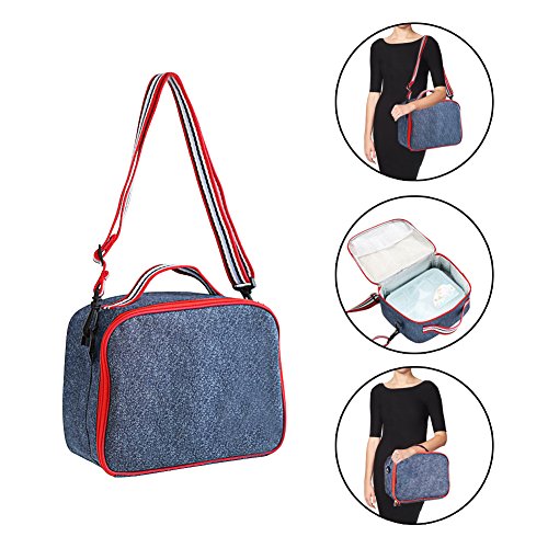 -. Title : Insulated Lunch Bag, FILWO Denim Cooler Bag Waterproof Lunch Holder Fashionable Lunch Tote Bag for Picnic Office Work School Travel Fishing Camping Sports