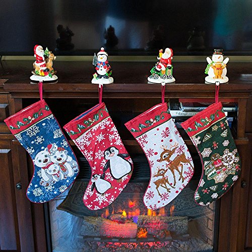 18" Set of 4 Polar Bears, Rudolph, Penguins and Gingerbread Man Christmas Stockings