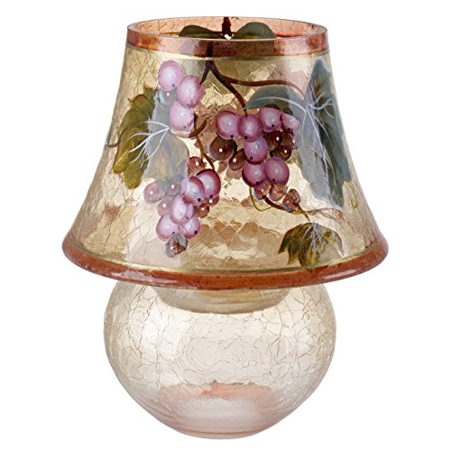 Tuscany Cracked Glass Lamp Candle Holder, Painted Glass, Grape Print