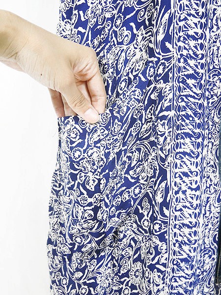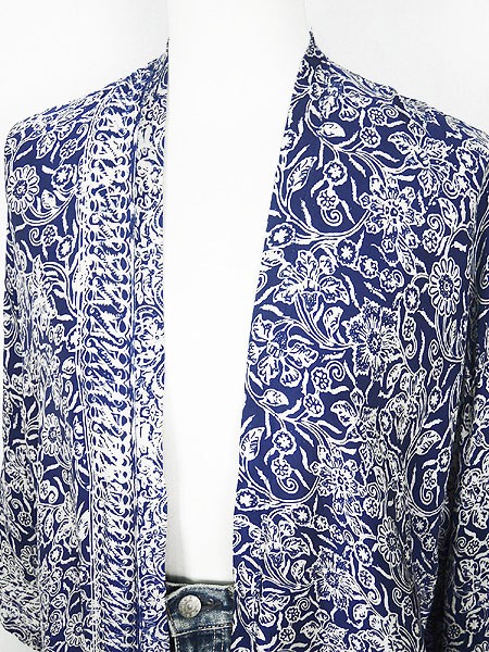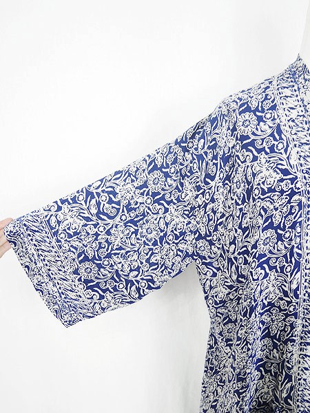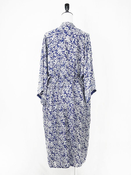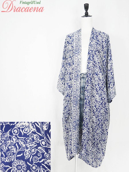 Ladies ブランド- カラー青ベース・白 メール便不可 コンディション★★★ 素材- 表記サイズ- スタッフコメントタグ、裏地なし。首周り付近、袖脇下付近などステッチ付近全体にスレ、ダメージあり。共布ベルト全体にスレ、ダメージあり。 実寸サイズ 着丈 113 cm 身幅 63 cm 肩幅 58 cm 袖丈 30 cm ※ウエスト・ヒップ以外は平置き採寸