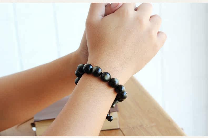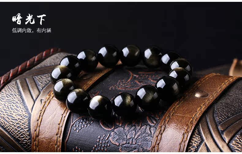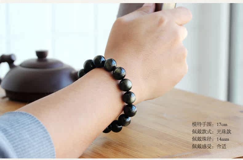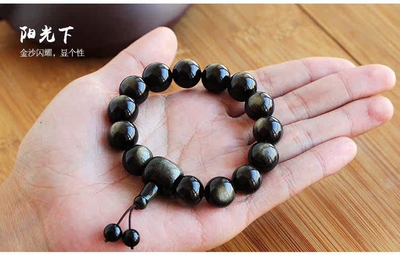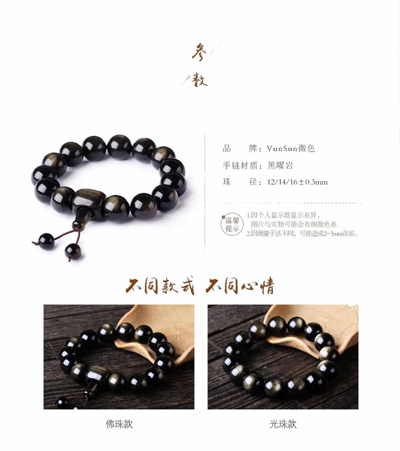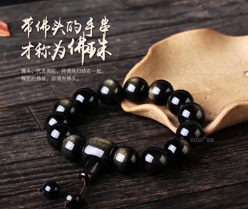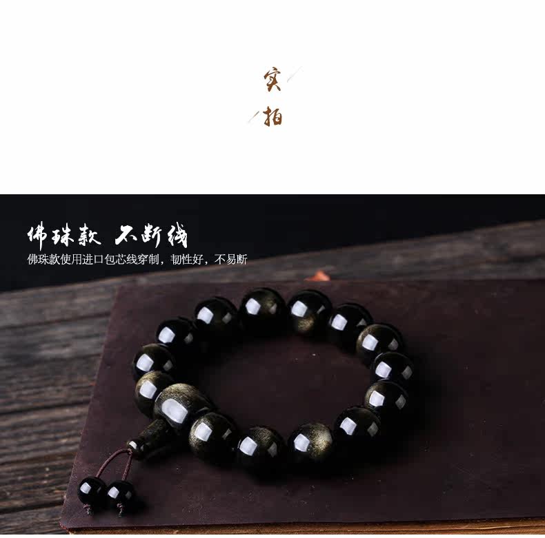 VunSun天然金曜石手链男女款双金猫眼黑曜石单圈佛珠手串水晶饰品