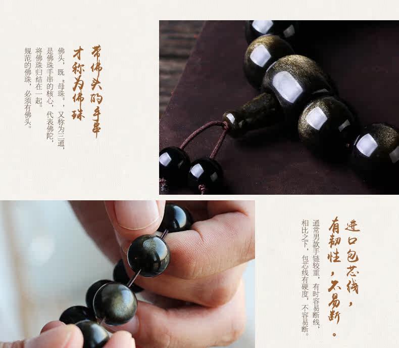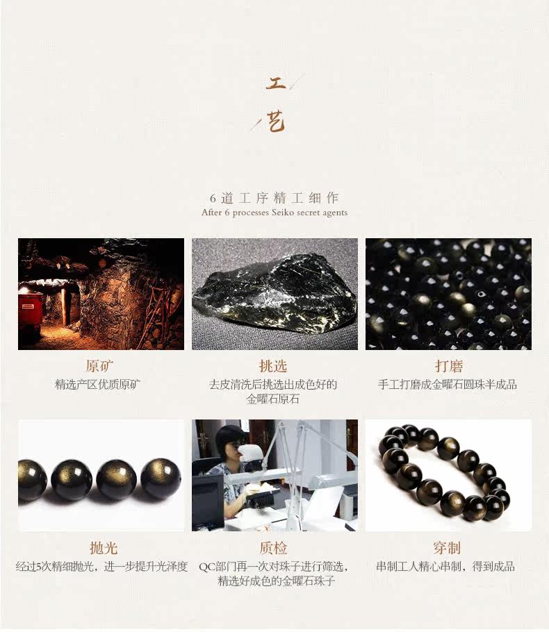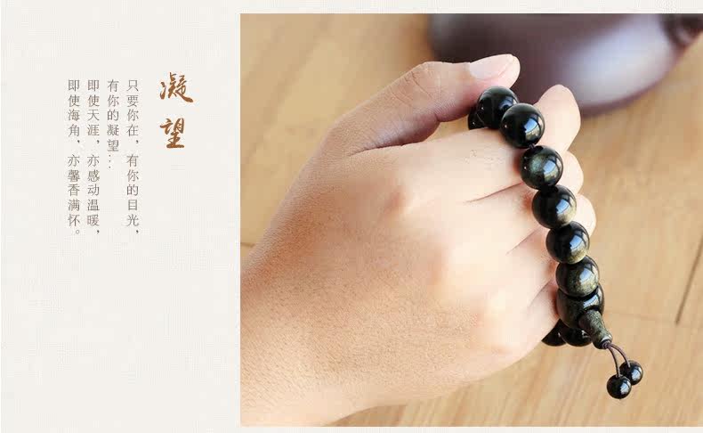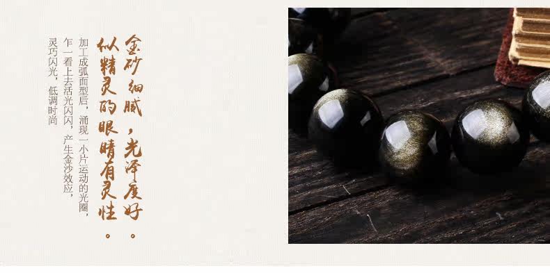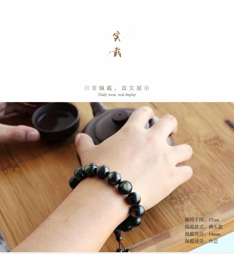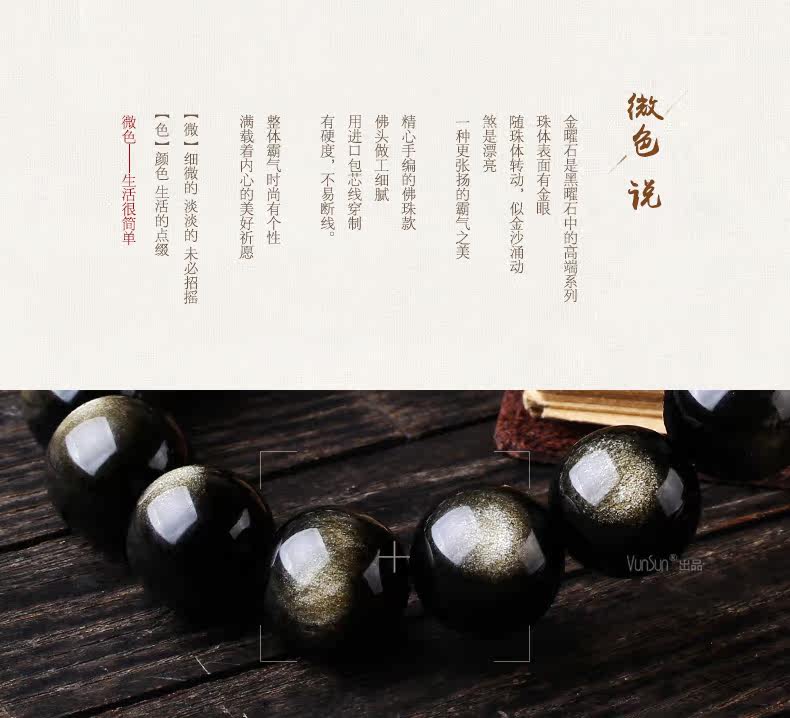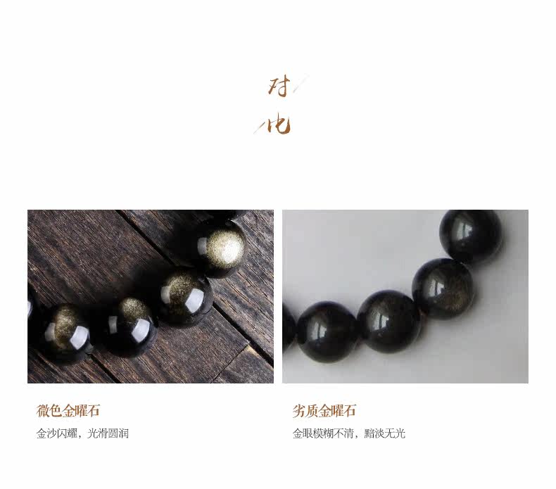 VunSun天然金曜石手链男女款双金猫眼黑曜石单圈佛珠手串水晶饰品