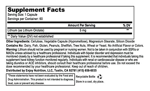 Each vegetarian capsule provides one serving of 5mg of elemental Lithium.