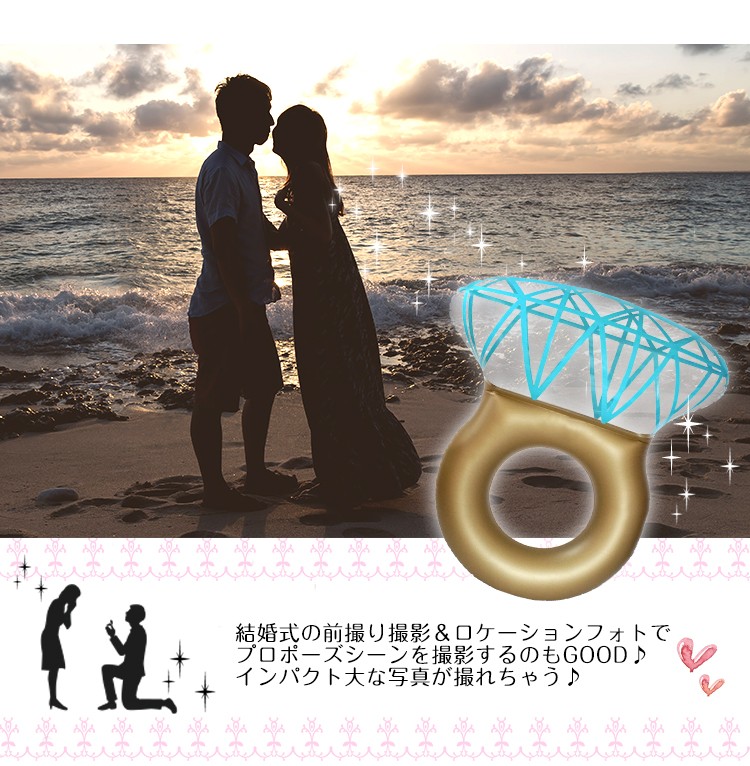 海外で話題沸騰中!SNS映え間違い無し!とってもcute☆なダイヤモンドリングのフロート。オシャレなフォルムがビーチで目を引くこと間違いなし♪また、結婚式の前撮り&ビーチでのロケーションフォトなどでプロポーズシーンを撮影するのもGOOD♪