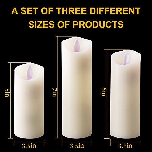 Flameless Candles 5" 6" 7" Set of 3 Ivory Dripless Real Wax Pillars Include Realistic Dancing LED Flames and 10-key Remote Control with 24-hour Timer Function