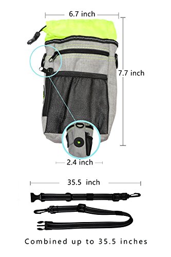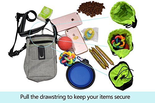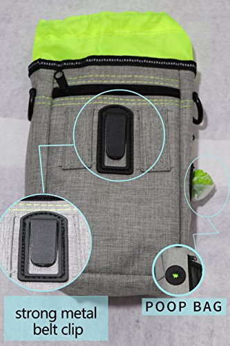 2. Worn in 3 Different Way ★ Simply choose to wear using the removable adjustable waistband, removable shoulder strap, or strong metal belt clip. Made of lightweight weatherproof nylon fabric material that keeps your dog treats dry while on those fun early morning walks with your pooch.