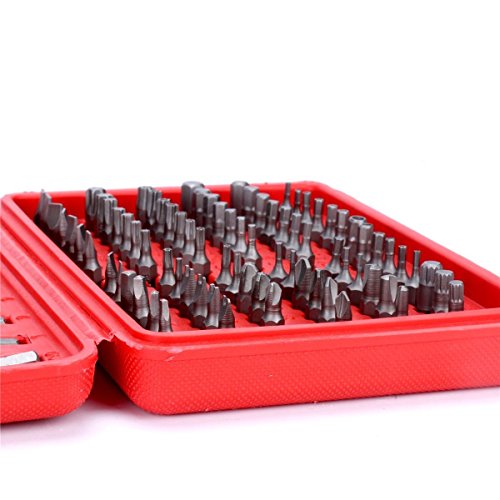 -. Feature : Material: CR-V Steel Surface treatment: Surface Blasting. / Case size: about (195*138*38)mm / Security Tamper Proof Bit Set Including Torx, Hex, Star, Torq, Tri-wing, and Spanner / Selection of security bits for tri-wing, Torx, spanner and hex fasteners in the most popular sizes / Bits fit all power drills, screwguns, cordless screwdrivers, and magnetic hand drivers. CR-V steel bits All bits have a sandblasted finish Complete with Storage Case