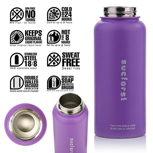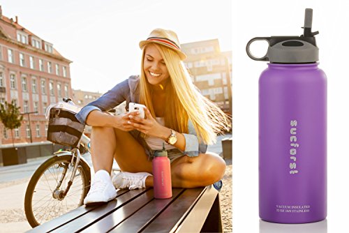 -. Feature : 18/8 STAINLESS STELL :SUCFORST drinkware is crafted from food-grade 18/8 stainless steel,All drinkware is BPA free,FDA approved,Highly resistant to rust,absorbing odor,and retaining taste,they easy to clean by hand. / KEEPS LIQUIDS COLD 24 HRS | HOT 12 HRS | PIPING HOT 8 HRS - Holds ice for up to 24 hours. Double Wall Vacuum Insulation for maximum temperature retention . / WHAT'S INCLUDED: Insulated Water Bottle with 3 different lids -straw,wide moth and flip lid . / NO SWEAT OR LEAK : SUCFOST water bottle comes with 3 lids that allows no leak or sweat! / 100% SATISFACTION GUARANTEED: We guarantee that the high quality SUCFORST bottle will surely please you! If, for any reason, you are not 100% satisfied with the SUCFORST, we will issue you a full refund or an exchange!