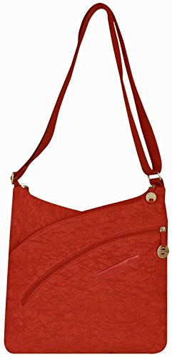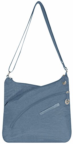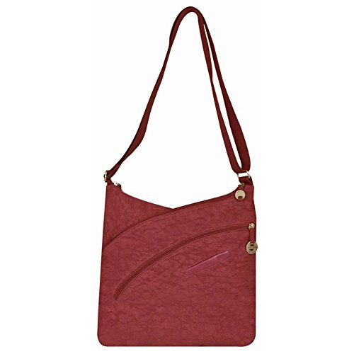 The Criss-Cross Organizer Bag from Travelon has multiple compartments and can be worn on the shoulder or across the body. The exterior features a front zippered organizer pocket with credit card slots, pen holder, and LED light, a front open cell phone pocket, and a back zippered pocket. The front zippered compartment features a mesh zippered pocket and two open pockets. The middle open compartment has a magnetic snap closure. The front zippered compartment has a roomy interior. Bag has an adjustable shoulder strap for your convenience.