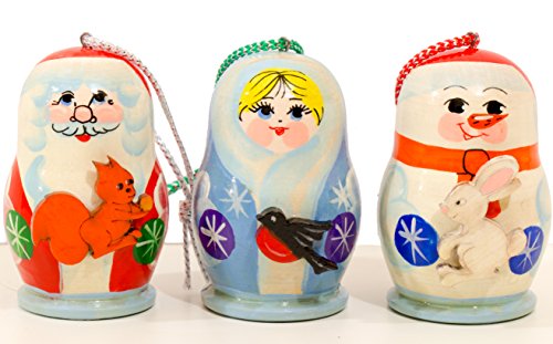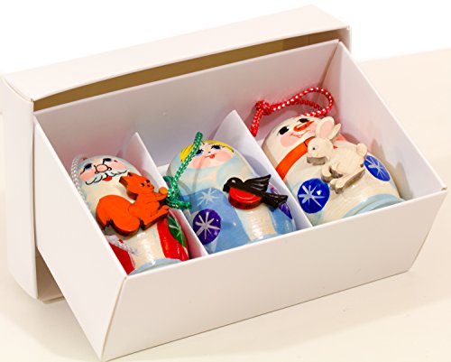 Set of handmade wooden Christmas Ornaments - 3 or 6 pack - 10 designs variations (3, Design H)