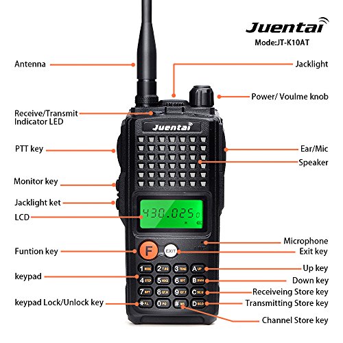 -. Binding : Electronics -. Brand : Juentai -. EAN : 0751369405233 -. Feature : New Juentai JT-K10AT is Supwer Power is :10W UHF 400-470Mzh Frequency Step 5/6.25/10.12.5/25Khz / Juentai JT-K10AT can talk Long range :8-15KM also you can get up to 100 Channels to store. / Comes with High Gain Antenna and Polymer large capacity of 3000mAh, quite suitable for outdoor activities. / Operation menu is so easy,the JT-K10AT the Quality is very strong and 350 hours' super-long waiting time / We provide 1 year warranty We provide 1 year warranty and 30 days no reason to return; No matter any reason, within 30 days you can apply for a return (Including the radio accessories) -. Label : Juntai Electronics Co., Ltd -. Manufacturer : Juntai Electronics Co., Ltd -. Model : JT-K10AT -. PackageQuantity : 1 -. ProductGroup : Car Audio or Theater -. ProductTypeName : TWO_WAY_RADIO -. Publisher : Juntai Electronics Co., Ltd -. Studio : Juntai Electronics Co., Ltd -. Title : JUENTAI JT-K10AT Ham Two way radio UHF 400-470MHZ Hight Power 10W Amateur Handheld Transceiver Walkie talkie FM Two way radio -. UPC : 751369405233