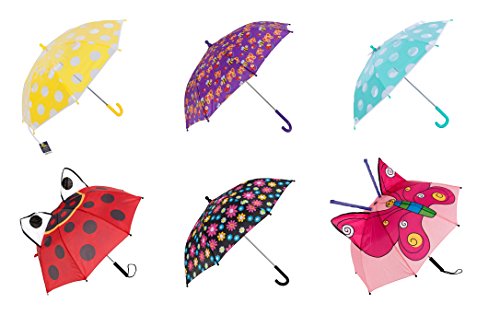 Product Description Imagine your child walking to school and it starts to pour down rain. If she is just wearing a raincoat, she still gets wet. In fact, she gets soaked. So does her backpack and everything inside it. Your child will love walking in the rain with this cute umbrella. She will have fun twirling her umbrella to see all sides Best of all, she will stay dry with this fun, easy-to-care-for umbrella. 0