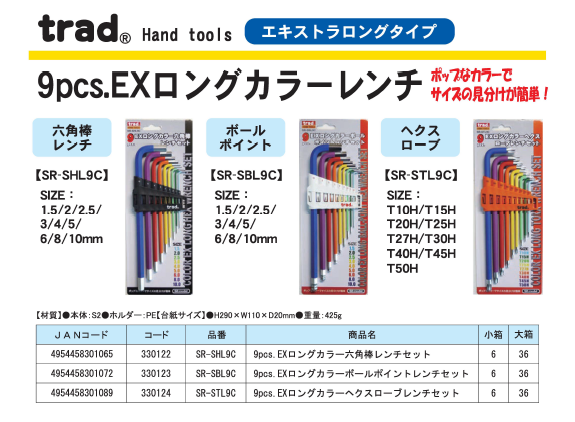 【商品名】(業務用2セット)TRAD カラーレンチセット/作業工具 ボールポイント 【エキストラロングタイプ/9個入】 SR-SBL9C 〔業務用/DIY用品/日曜大工/スパナ〕