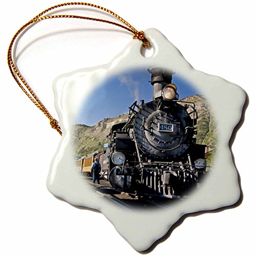 3dRose orn_88941_1 Durango and Silverton Narrow Guage Railroad, Trains US06 LKL0010 Lee Klopfer Snowflake Porcelain Ornament, 3-Inch