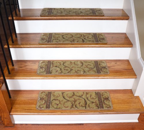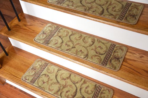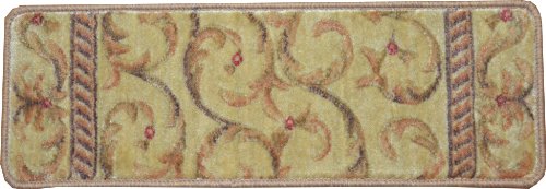 -. Brand : Dean Flooring Company -. Color : Beige -. Feature : Luxurious and Resilient Texture / High Fashion Design with Beautiful Scroll Work / Uncommon Softness and Durability / Prevents Slips on Your Hardwood Stairs / Provides Warmth and Comfort -. Label : Dean Flooring Company -. Manufacturer : Dean Flooring Company -. MPN : ST39 -. PartNumber : ST39 -. ProductGroup : BISS -. ProductTypeName : LAB_SUPPLY -. Publisher : Dean Flooring Company -. Size : 26" x 9" -. Studio : Dean Flooring Company -. Title : Dean Flooring Scrollwork Carpet Stair Treads, Ivory/Beige (13-Pieces)