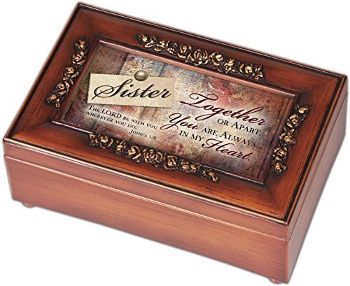 -. Title : Sister Cottage Garden Rich Walnut Finish with Brushed Gold Rose Trim Petite Jewelry Music Box - Plays Song Amazing Grace by Cottage Garden