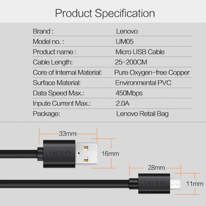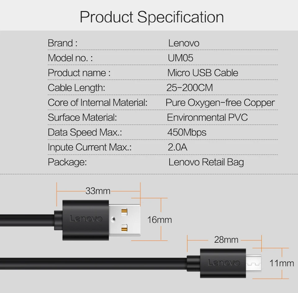 Item Name:Lenovo Micro USB Quick Charge & Data Sync Cable