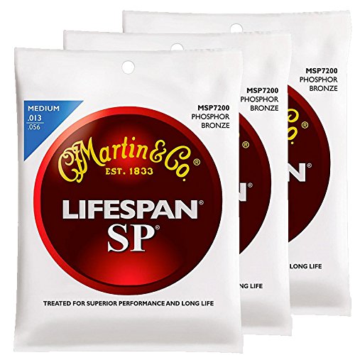 Product Description Martin SP Lifespan acoustic guitar strings are treated with Cleartone proprietary technology to bring you the longest possible string life without sacrificing tone or natural feel. Martin SP Lifespan strings are designed to repel the oils and dirt that can deaden strings. All six strings are treated to preserve the natural Martin SP sound and feel that players prefer. Phosphor Bronze strings are bright, but slightly warmer sound than 80/20 bronze when first put on the guitar. They offer consistent tone over time. Phosphor bronze has a copper/tin alloy, making them sound brighter than regular bronze strings. 0