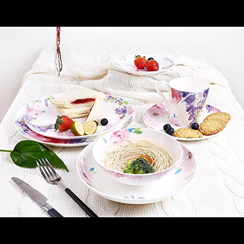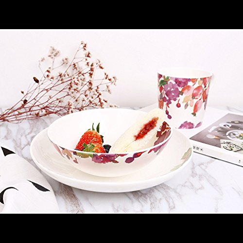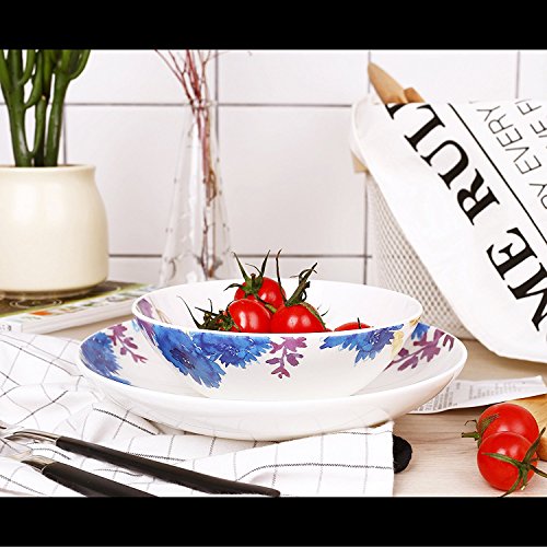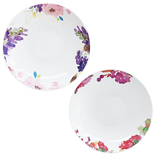 DoubleBlue 8" Rounded Soup Plate (Set of 2) Bone China pastoral for Everyday use - Watercolor Flowers and Fruits, Milticolors
