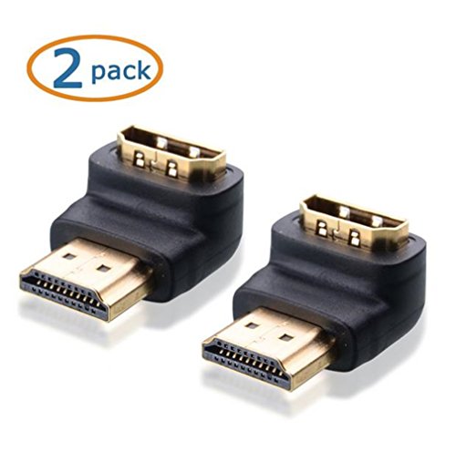 Convenient and cost-effective 2-Pack 90 degree HDMI adapters provide spare or replacement units for different equipments. Gold plated connectors resist corrosion and provide rigidity