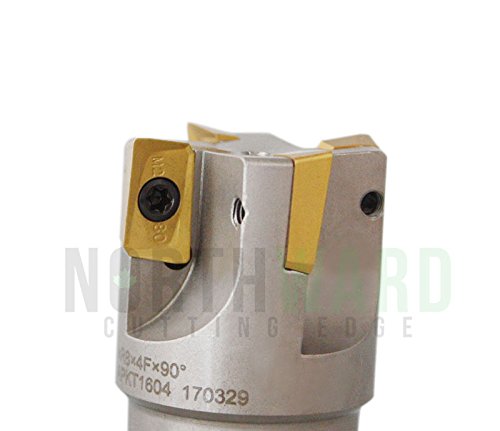 Accusize Tools - 1-1/2" x 6-1/8" 90 Degree R8 Shank Indexable End Mills with 4 APKT1604 carbide Inserts installed, #0028-6905