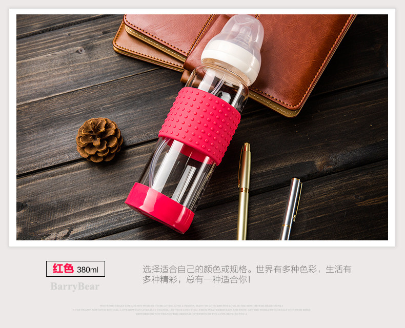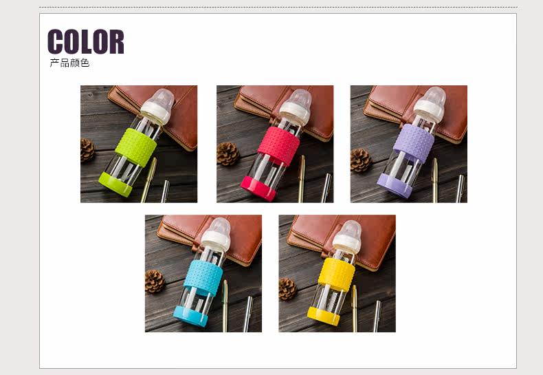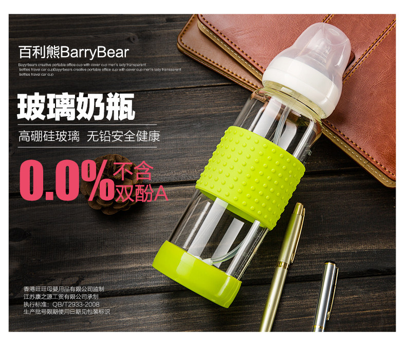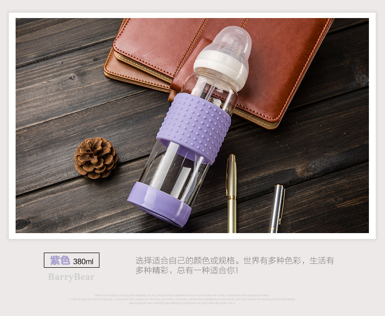 成人奶瓶防摔宽口玻璃大奶瓶创意儿童宝宝牛奶杯水瓶防胀气
