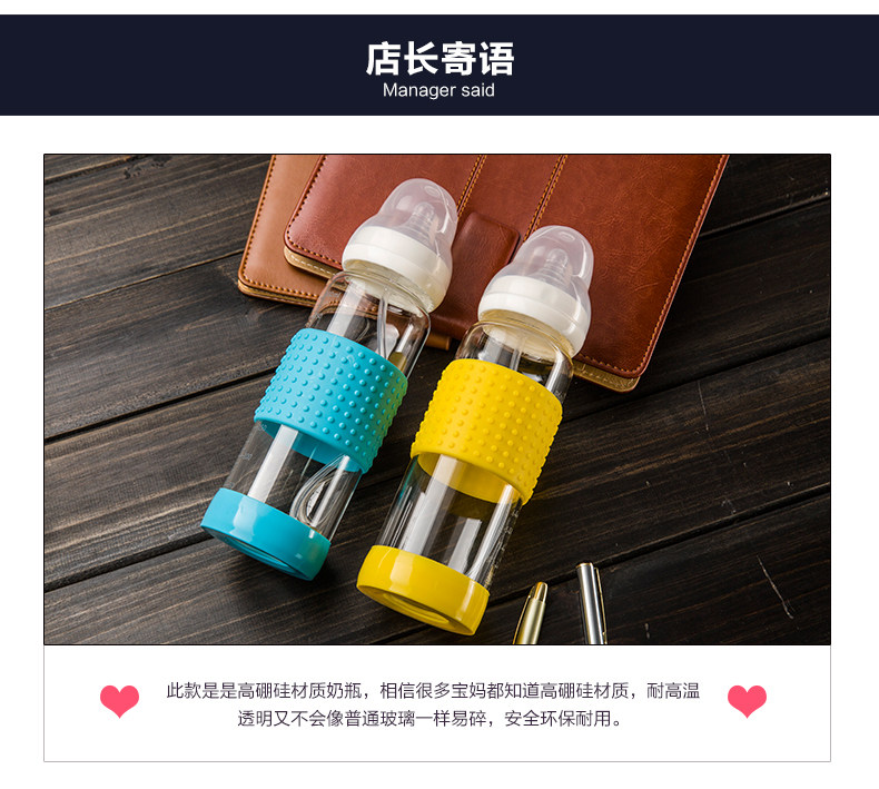 高硼硅玻璃 防摔防胀气 大容量大智慧 成人奶瓶