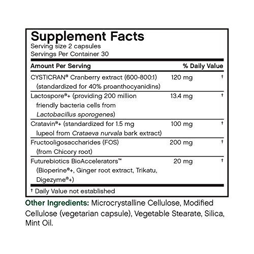 -. Feature : HIGHEST QUALITY INGREDIENTS: Clinically proven for healthy urinary tract function / MAINTAIN BALANCE: CranBiotic can help maintain critical flora balance in the urinary and gastro-intestinal tracts / HIGH POTENCY: This ultra high-potency, patented cranberry extract is concentrated at 600-800:1 and is standardized for 40% polyphenols as proanthocyanidins (PAC) / HEALTHIER LIFESTYLE: Futurebiotics has been committed to "Creating a Healthier Future* by helping our customers lead healthier lives through better nutrition / HASSLE-FREE: We back our products up with a 365-day hassle-free guarantee. There's no risk when you order now!