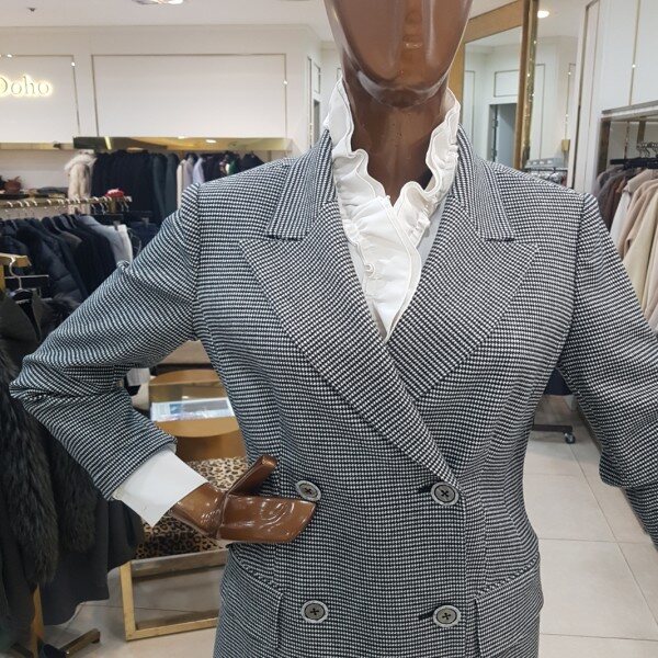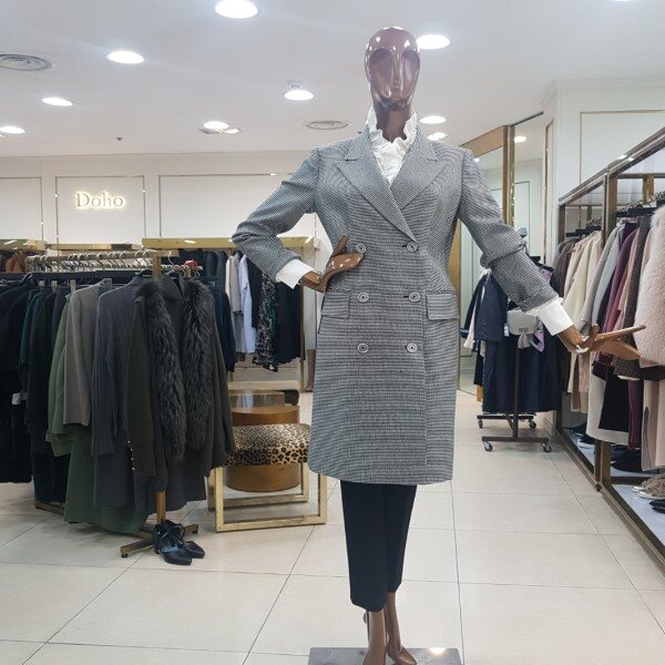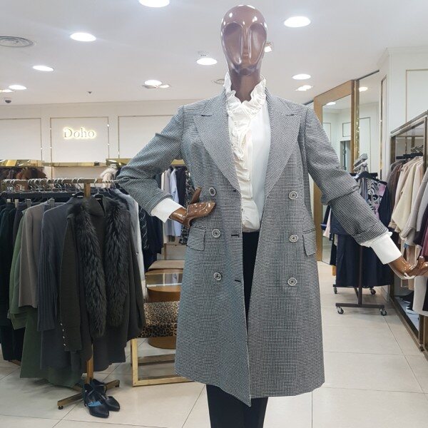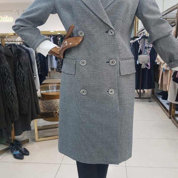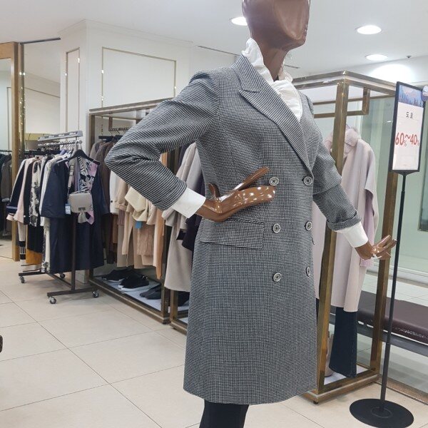 체크 더블버튼 롱자켓입니다.