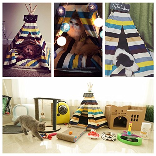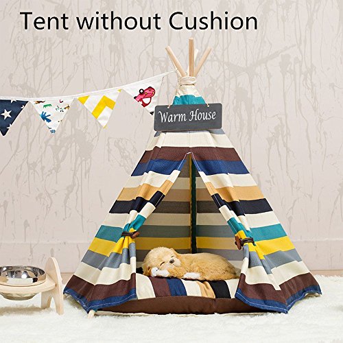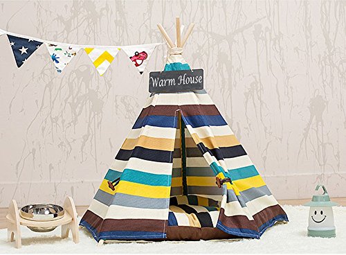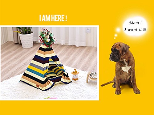 Love Your Dog, Give Her a Warm and Sweet Home! Pets love their own space, and this pet tent is perfect for indoor and outdoor use, the home, yard, beach, camping, and more. It's not only a pet bed, cat dog rest room but also a pet toy house, play room. The dog teepee is Colorful Stripe Pattern and unique Native American designs that suit your home decoration and perfect decorate your living space.Both you and your pet will love it.