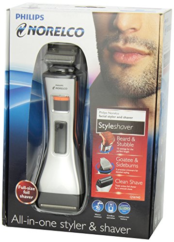 Create the exact look you want with the Philips styleshaver. At the flip of your wrist, this dual-ended beard styler and shaver has everything you need to create any facial hair style. Choose from 12 length settings to trim your beard to the exact length you want, use the medium and large full metal guard trimmers for detailed styling, and finish up with the triple action foil shaver for a perfectly clean shave, even on tough beards. Includes a lithium ion battery for long-lasting power.Feature
