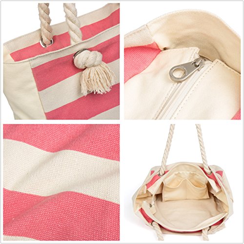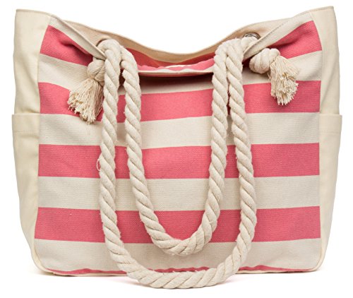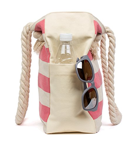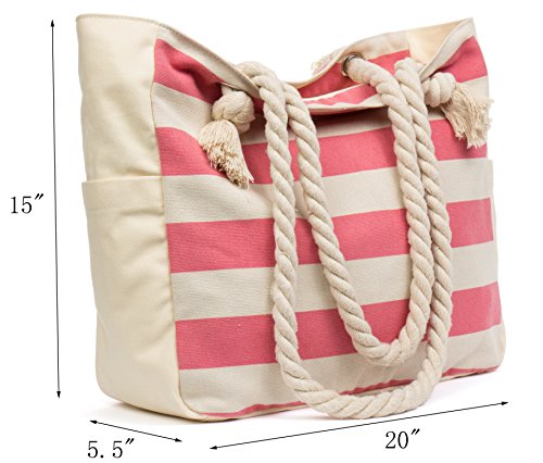 There are 100's of beach bags on Amazon. Here's why the Malirona Beach Bag stands out from the crowd: LARGE STORAGE SPACE: Spacious size for your beach towels, favorite magazine, kids toys, and other beach essentials without feeling too bulky. EYE-CATCHING DESIGN: ?This attractive and innovative beach bag will make heads turn and draw lots of compliments from fellow beach-goers. QUALITY MATERIALS: Ours is made of durable 16 ounce high quality Cotton canvas. LINED POCKETS WITH ZIPPER: We made sure your must-have items stay dry, secure, and sand free.? CARRYING COMFORT: Our long 14" shoulder straps with a reinforced, padded handle make the tote bag more comfortable to carry than cheaper versions. LIGHTWEIGHT FOLDABLE: The bag weighs only 21 oz when empty and folds flat for travel and easy home storage. MULTIPLE USES: Ideal for the beach, pool, water park, gym, picnics, cruises, tropical getaways, and shopping - the perfect bag for fun family outings! 100% LIFETIME GUARANTEE: We make a lifetime money-back and replacement guarantee - no return required! 0 |