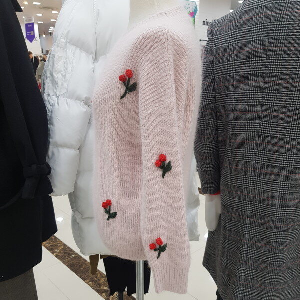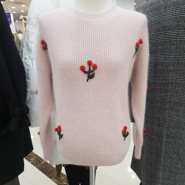 포근한 앙고라니트로 화사한 색감과 앵두 무늬로 얼굴을 환하게 밝혀줍니다♡