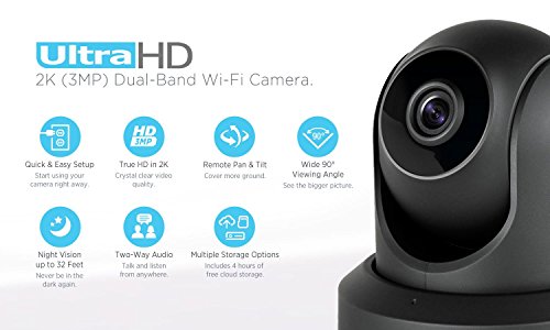 Amcrest UltraHD 2K (3MP/2304TVL) WiFi Video Security IP Camera with Pan/Tilt, Dual Band 5ghz/2.4ghz, Two-Way Audio, 3-Megapixel @ 20FPS, Wide 90° Viewing Angle and Night Vision IP3M-941B (Black)