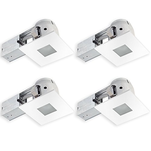 4" LED IC Rated Shower Dimmable Downlight Recessed Lighting Kit, Easy Install Push-N-Click Clips, Contractor's (4-Pack), 4x LED Bulbs Included, Globe Electric 90951