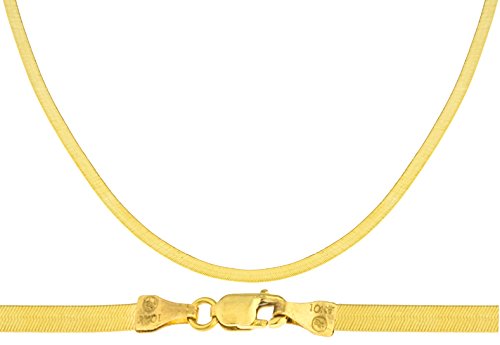 10k Yellow Gold 3mm Herringbone Chain Necklace - Available in 16", 18", 24" (18 Inches) (GO-917)